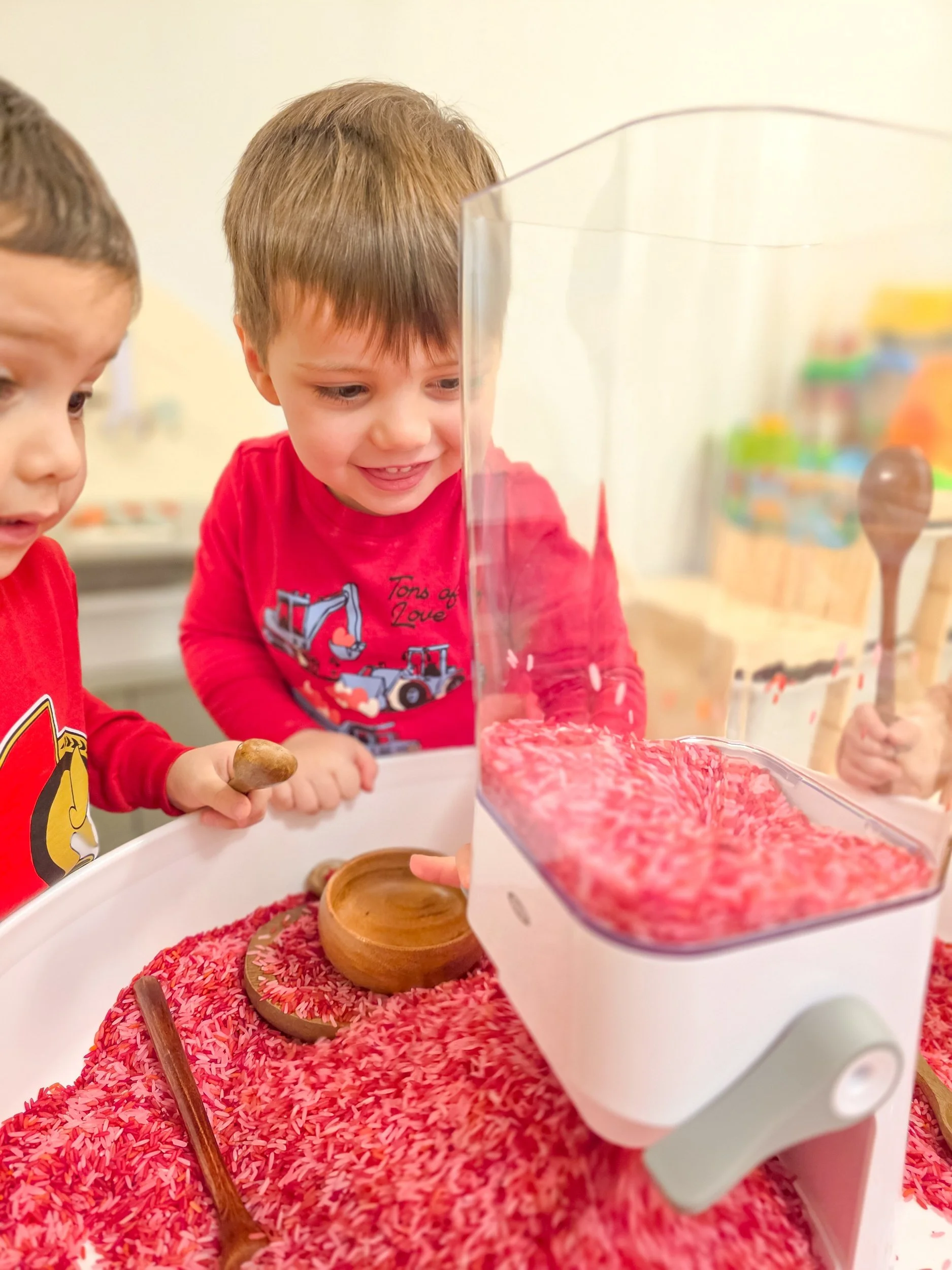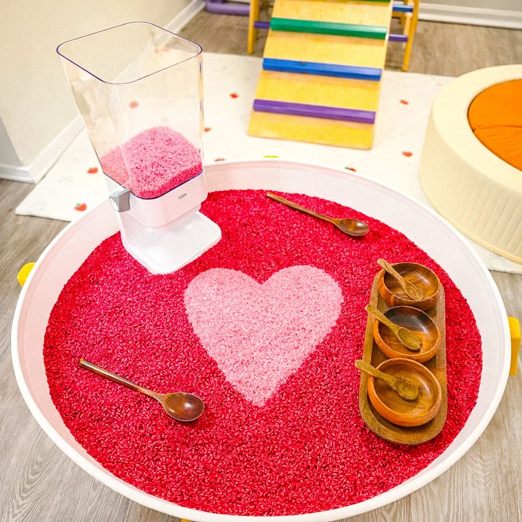 Valentine’s Sensory Rice Play ❤️ Feb 3 Written By Sandra Charron Scooping, pouring, and turning the dispenser to explore cause and effect 🍚😊 Sandra Charron